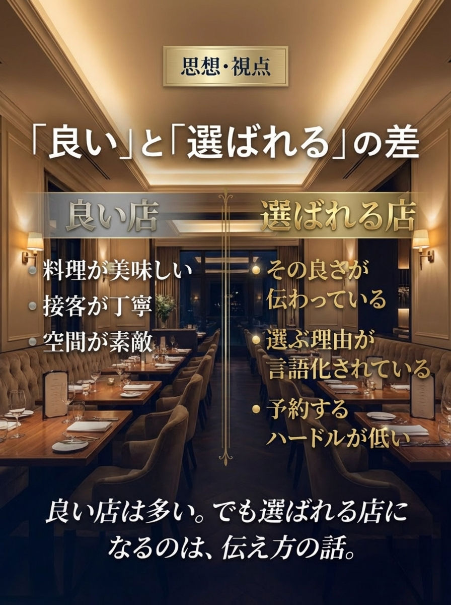 この記事では、「良い店」と「選ばれる店」の違いを整理しながら、予約につながる導線設計の考え方を解説します。